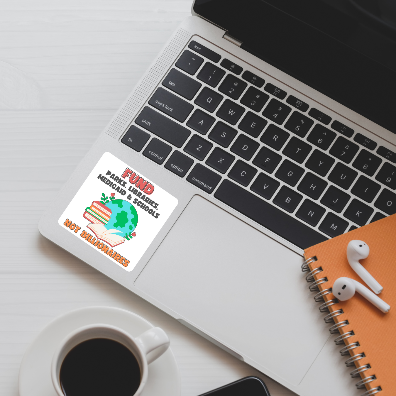 Fund Parks, Libraries, Medicaid & Schools Not Billionaires Sticker | 3.5" x 3.5" Vinyl Decal | Political Sticker