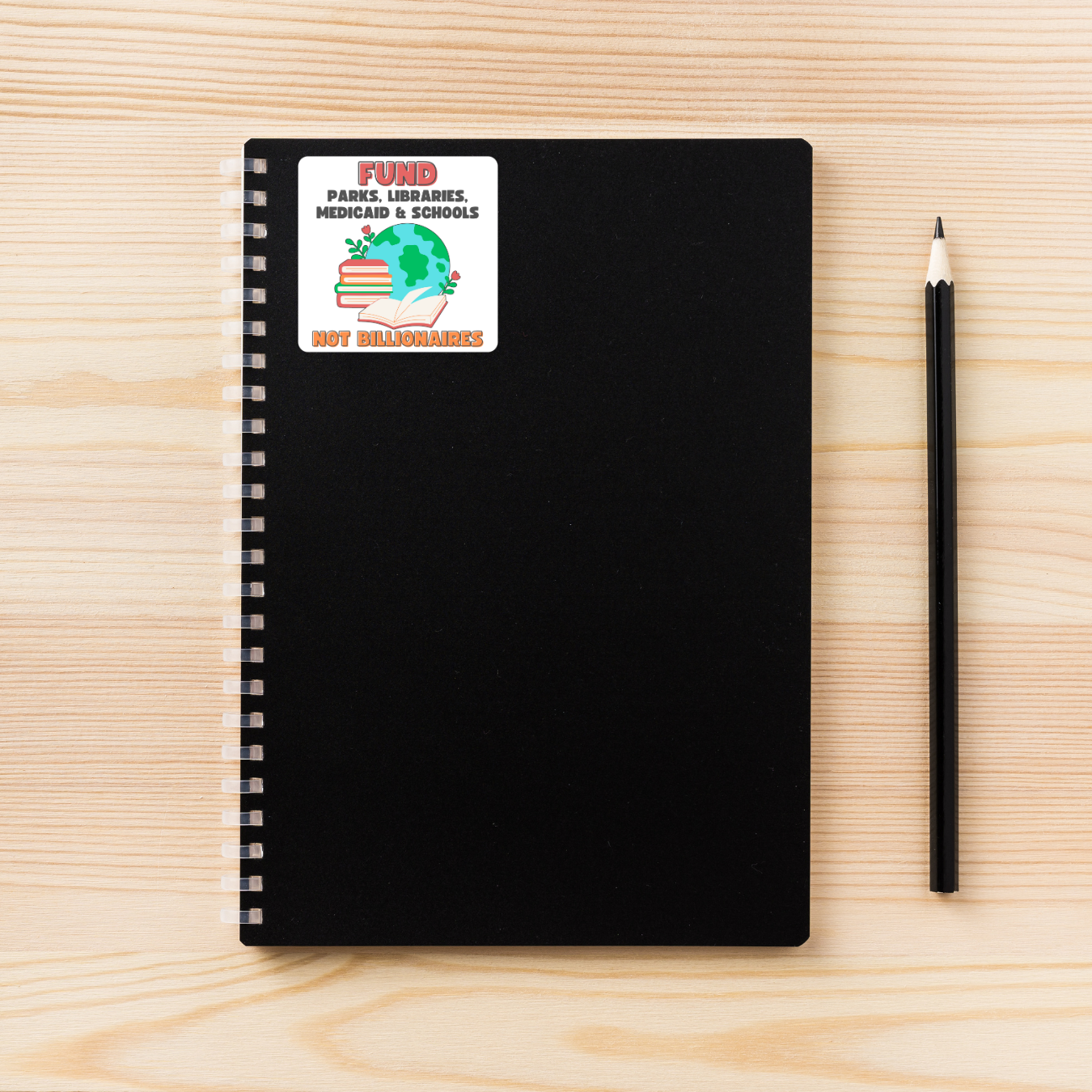 Fund Parks, Libraries, Medicaid & Schools Not Billionaires Sticker - 3.5 x 3.5 in