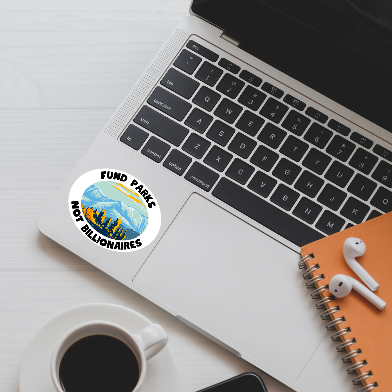 Support green spaces, not corporate greed, with this "Fund Parks Not Billionaires" sticker! A bold statement for environmentalists, activists, and anyone fed up with wealth hoarding, this vinyl decal is perfect for water bottles, laptops, or anywhere you want to make a statement about what really matters.