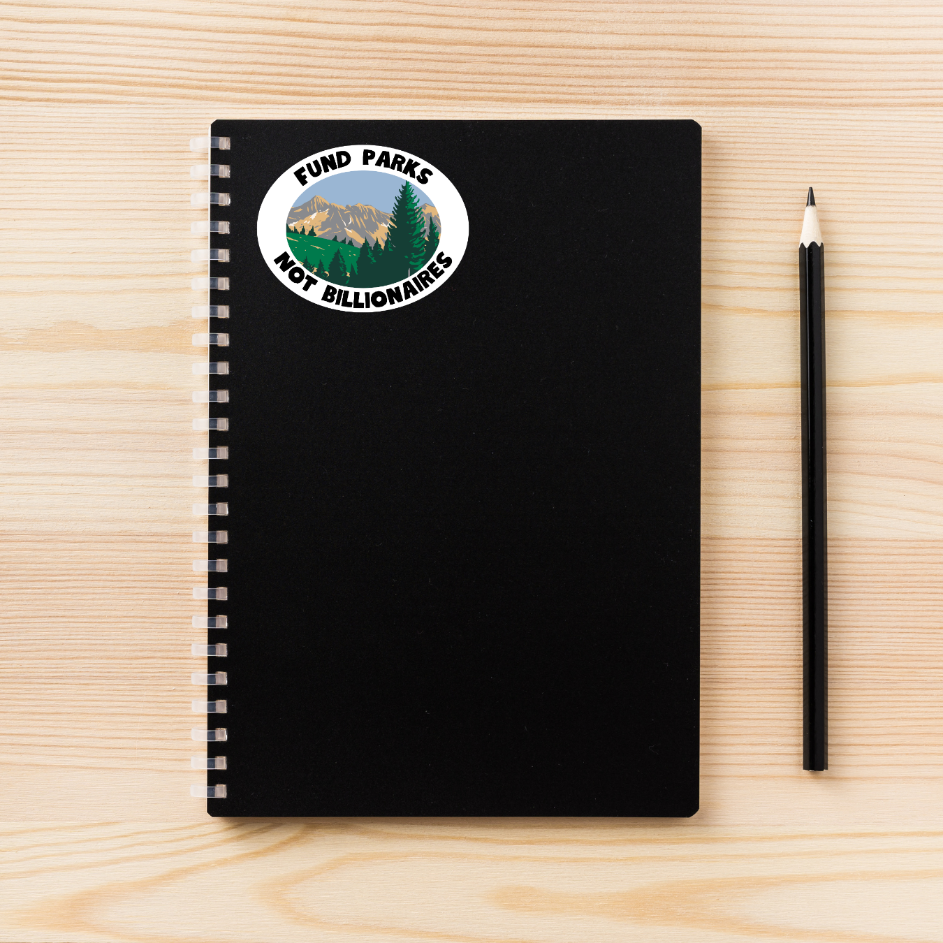 Fund Parks Not Billionaires Oval Sticker | Political Sticker | Vinyl Sticker | Water-Resistant | Anti-Billionaire | Pro-Environment | Activism Decal