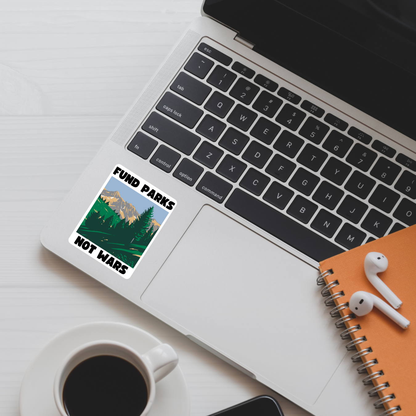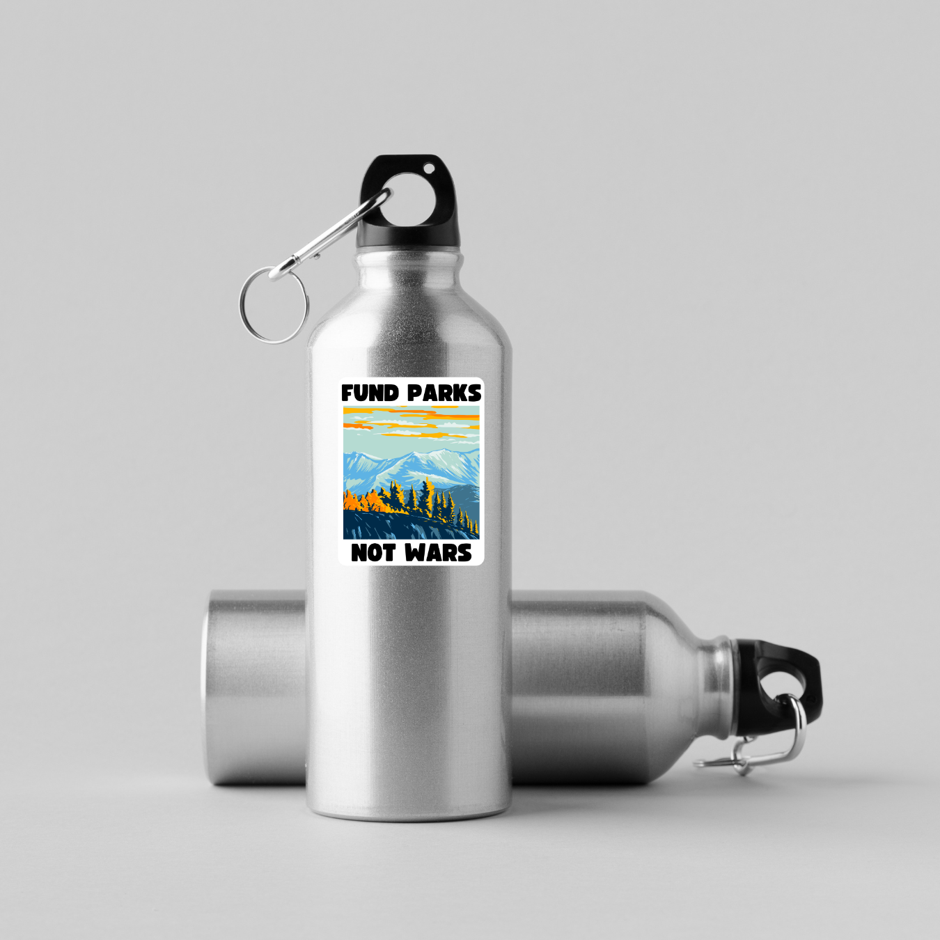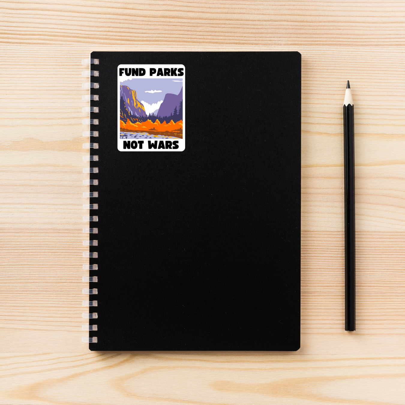 Make your message clear with this bold “Fund Parks Not Wars” sticker—featuring scenic illustrations of iconic U.S. national parks and a message that prioritizes people and the planet over endless conflict. This 3.5" x 2.5" vinyl decal is perfect for laptops, water bottles, notebooks, and any surface that deserves a little resistance and a lot of nature.