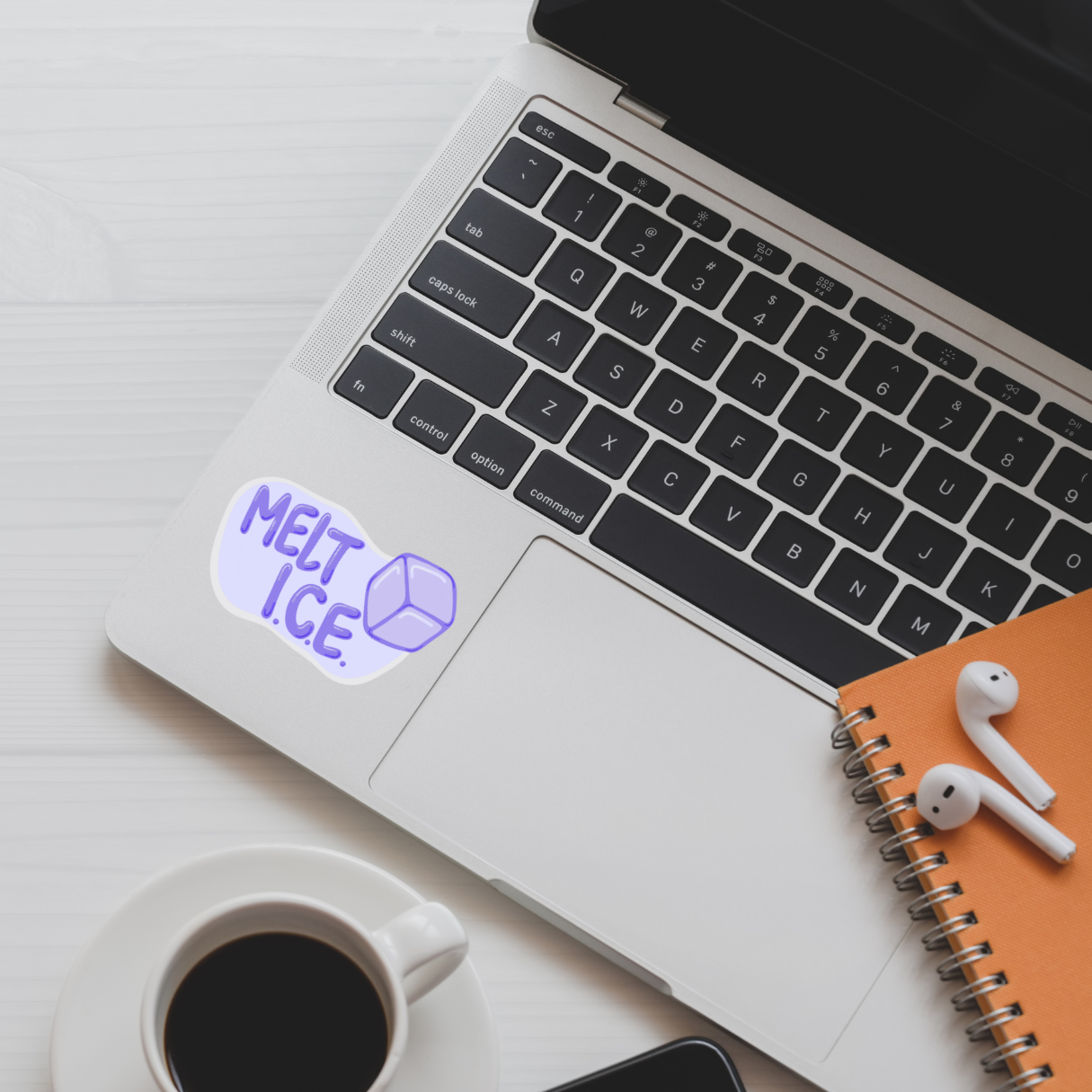 This bold "Melt ICE" anti ice sticker features a melting ice cube with the message spelled out in the puddle—both literal and political. It’s a powerful protest piece advocating for immigration justice and the abolition of ICE. Perfect for water bottles, laptops, notebooks, or anywhere you want to make a statement.