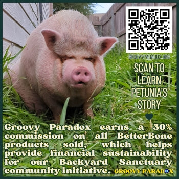 Groovy Paradox earns a 30% commission on all BetterBone products sold, which helps provide financial sustainability for our Backyard Sanctuary community initiative.