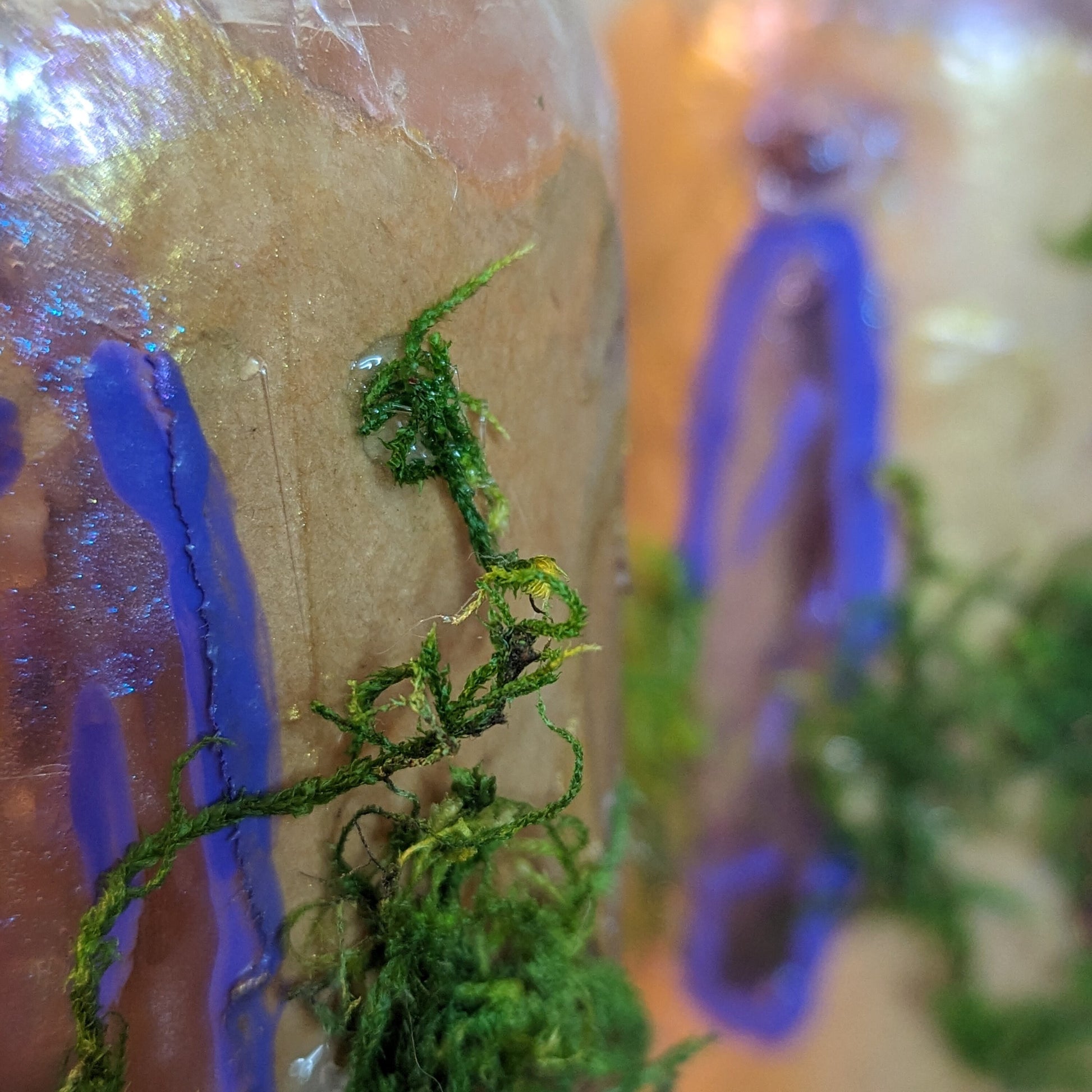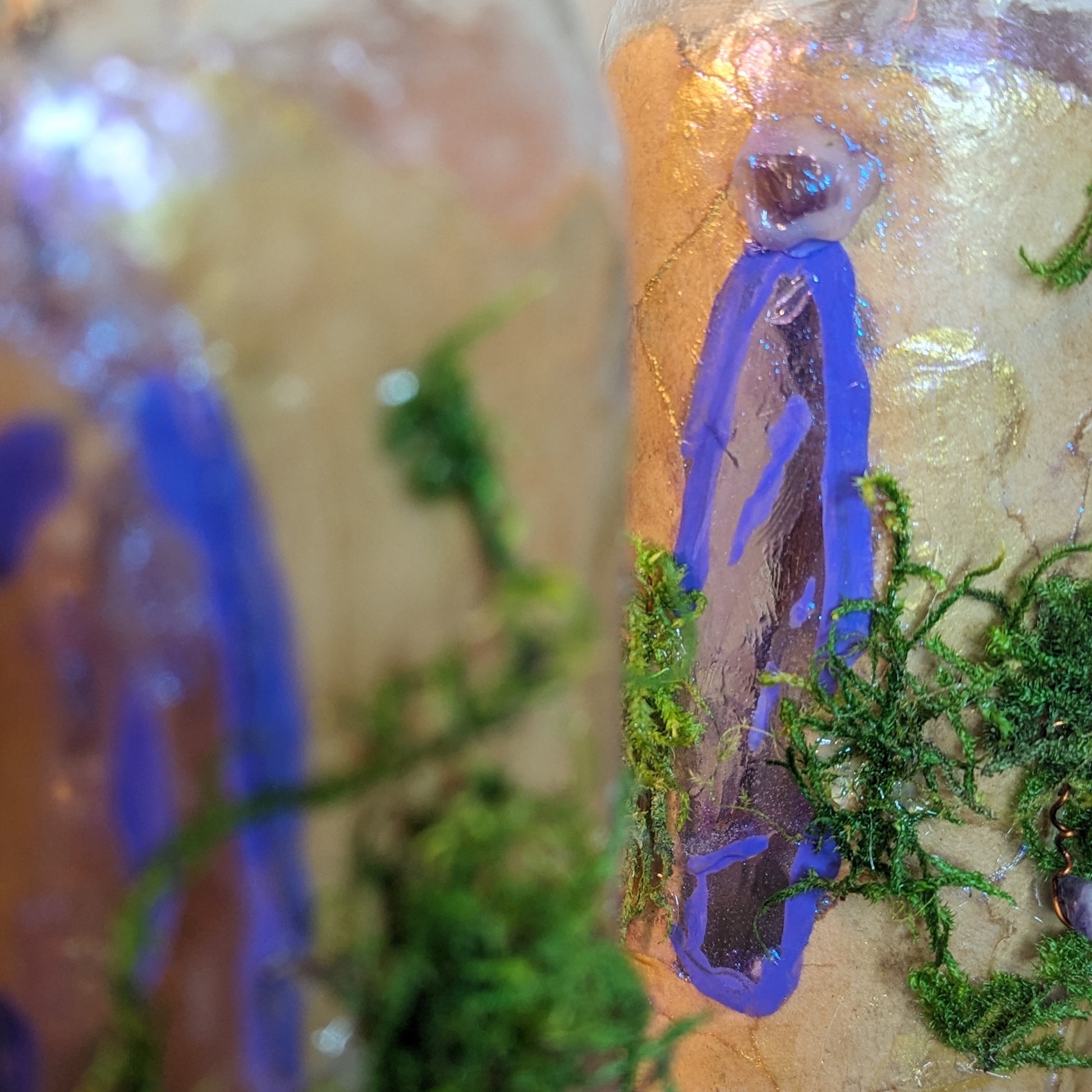 Upcycling is an act of magick, turning the discarded into something new and vibrant, much like the cycles of renewal in nature. The Golden Aura Fairy Amplifier transforms simple bottles into vessels of divine energy, adorned with shimmering gold paint to resonate with cosmic elegance.