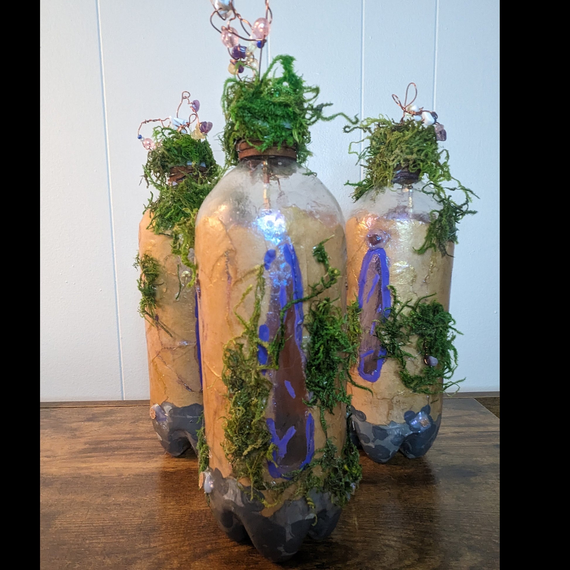 Invite the fae and light energy into your space with the Golden Aura Fairy Amplifier from the Create Magick series. This enchanting piece, crafted from upcycled bottles, serves as a bridge between the earthly and ethereal, reminding us that we are all capable of creating magick as multidimensional beings.